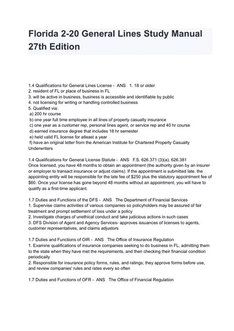 Reading Online FLORIDA GENERAL LINES STUDY MANUAL Doc